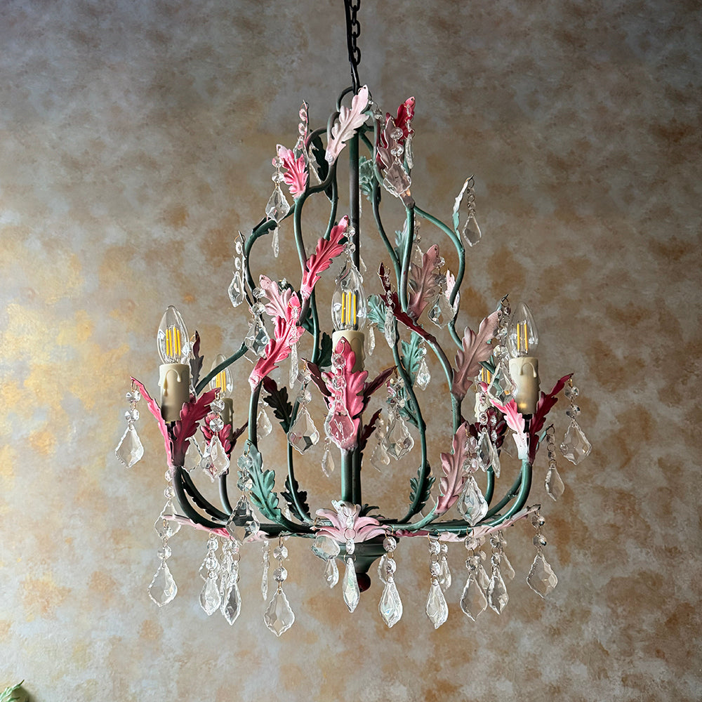 The chandelier comes with chain, wire & ceiling cap for suspension.